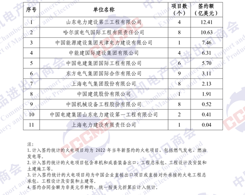 2022年中國(guó)企業(yè)境外火電項(xiàng)目簽約額排名