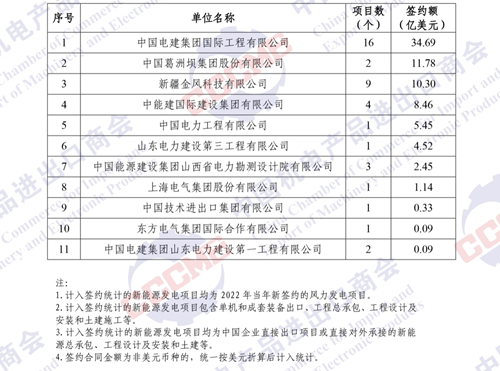 2022年中國(guó)企業(yè)境外風(fēng)電項(xiàng)目簽約額排名