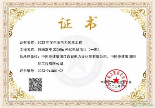 中國(guó)電建越南富美光伏電站項(xiàng)目喜獲中國(guó)電力優(yōu)質(zhì)工程獎(jiǎng)