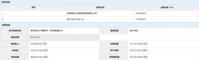 股權(quán)結(jié)構(gòu)方面,公司為陜西有色金屬控股集團(tuán)有限責(zé)任公司(以下簡稱陜有色)旗下全資孫公司和REC硅旗下公司共同出資組建,雙方分別持有公司84.94%和15.06%的股份。