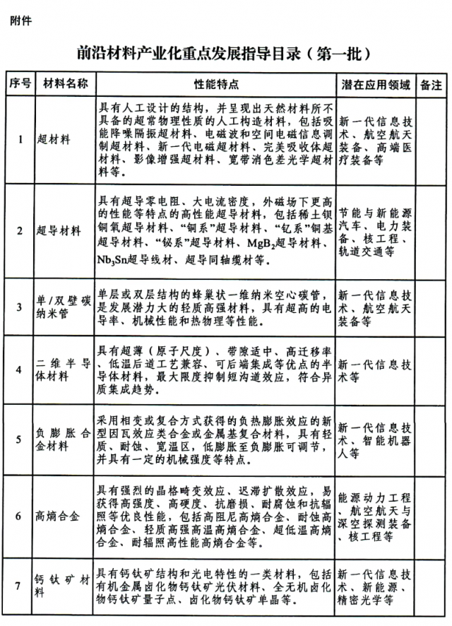 附件:前沿材料產業(yè)化重點發(fā)展指導目錄(第一批)