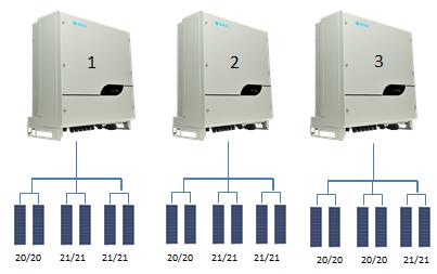 6. 3臺逆變器組件布局如下圖,三路MPPT,每路為兩路PV并聯(lián)輸入。
