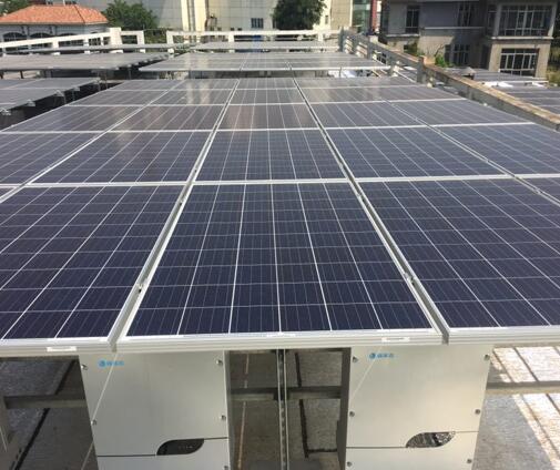 并網(wǎng)點就近380V接入電網(wǎng)。因屋頂周圍無承重墻,考慮逆變器的防護,通風及接線方便,最終確定逆變器掛在組件支架上的方案。