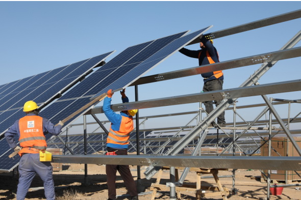 一望無垠的荒漠戈壁里,光伏藍(lán)海在陽光下熠熠生輝,與光熱儲(chǔ)能板塊、風(fēng)電板塊遙相呼應(yīng),“建”證著建設(shè)者在“沙戈荒”上追“光”逐“日”。中建二局將始終聚焦國(guó)家發(fā)展戰(zhàn)略,以實(shí)際行動(dòng)為綠色中國(guó)貢獻(xiàn)更多力量。(麻倩、劉慶安)