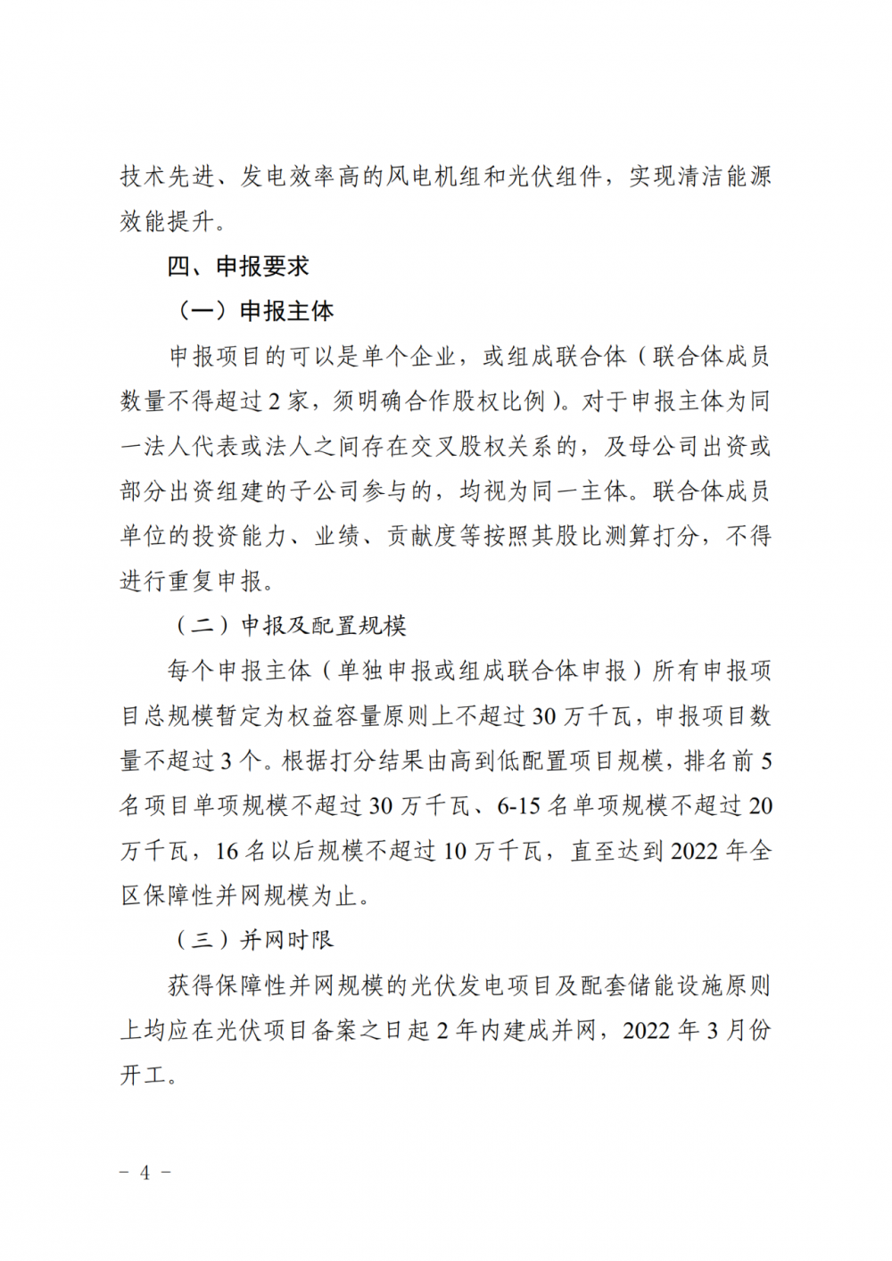在規(guī)模分配方面,擬采用“百分制”綜合評分法方式打分,由高到低進行規(guī)模配置。排名前5名項目單項規(guī)模不超過300MW,6-15名單項規(guī)模不超過200MW,16名以后規(guī)模不超過100MW,直到當(dāng)年度規(guī)模分配完畢。需要注意的是,每個申報主體總項目規(guī)模的權(quán)益裝機不得超過300MW。