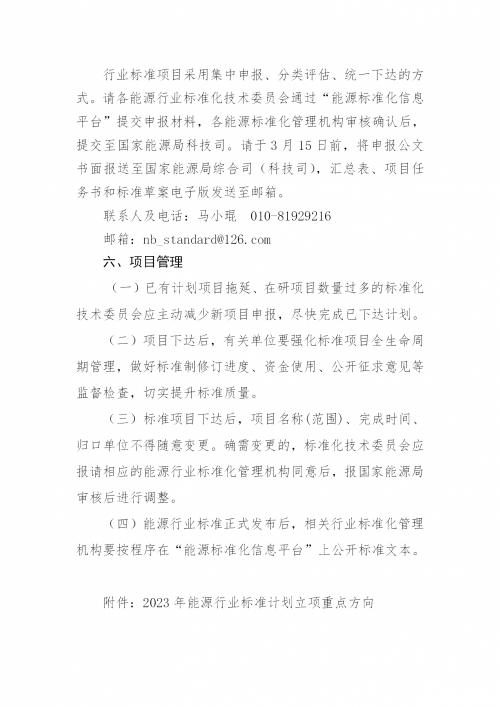 國(guó)家能源局綜合司關(guān)于印發(fā)《2023年能源行業(yè)標(biāo)準(zhǔn)計(jì)劃立項(xiàng)指南》的通知