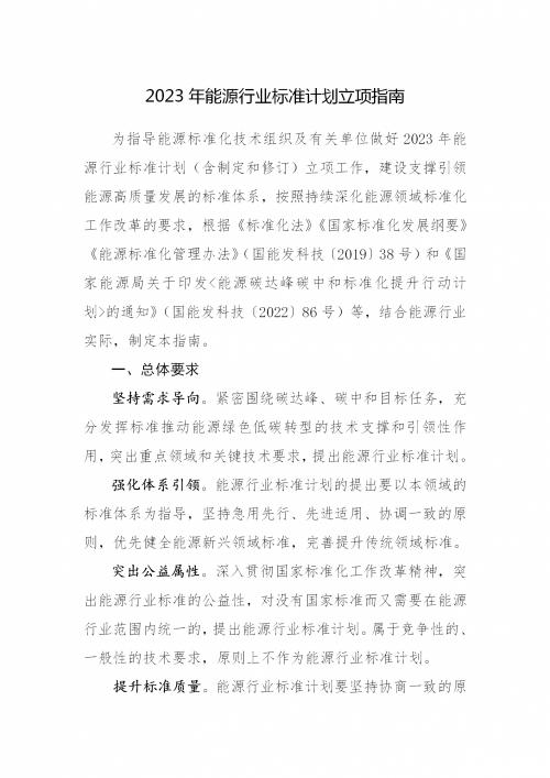 《2023年能源行業(yè)標(biāo)準(zhǔn)計(jì)劃立項(xiàng)指南》