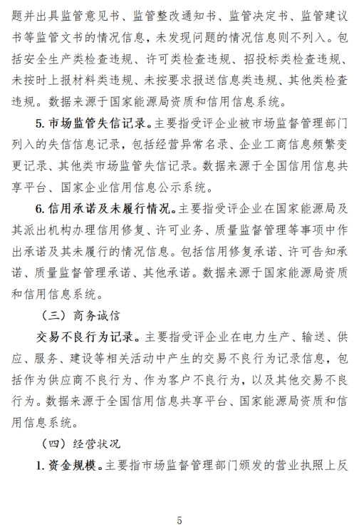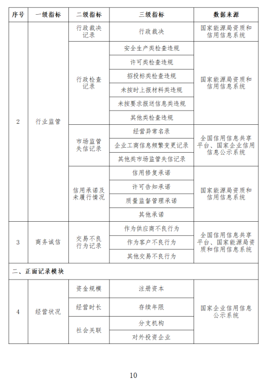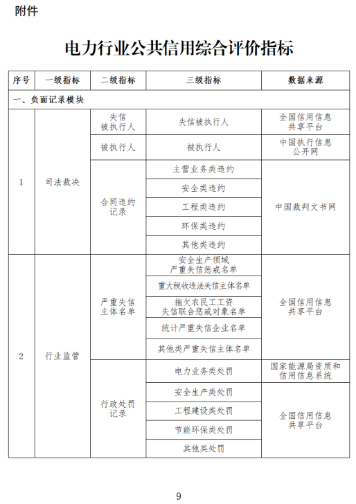 近日,國家能源局印發(fā)《電力行業(yè)公共信用綜合評價標(biāo)準(zhǔn)(試行)》的通知(國能發(fā)資質(zhì)規(guī)〔2023〕28號),明確提出“電力行業(yè)公共信用綜合評價指標(biāo)分為三級:一級指標(biāo)6項(xiàng),主要包括司法裁決、行業(yè)監(jiān)管、商務(wù)誠信、經(jīng)營狀況、發(fā)展創(chuàng)新和守信激勵,二級指標(biāo)16項(xiàng),三級指標(biāo)46項(xiàng)”。原文如下: