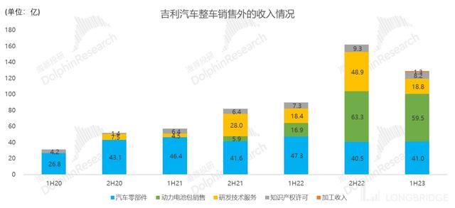2023 年上半年,公司整車銷售業(yè)務(wù)實現(xiàn)營收 603 億元,同比增 23%,超出市場預(yù)期 10.8%。在銷量(不含領(lǐng)克、睿藍)同比增長 12% 的但銷量數(shù)據(jù)市場已知的情況下,單車 ASP 超出市場預(yù)期 13.3%,帶動整車銷售業(yè)務(wù)大幅度超預(yù)期。