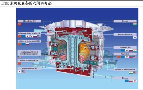 目前ITER主導(dǎo)下的國(guó)內(nèi)可控核聚變托卡馬克產(chǎn)業(yè)鏈:主要集中于主體部分,包括磁體系統(tǒng)、包層模塊、偏濾器、面向等離子體材料(包層第一壁、偏濾器靶板材料)、增殖單元材料(中子倍增劑)等環(huán)節(jié)。