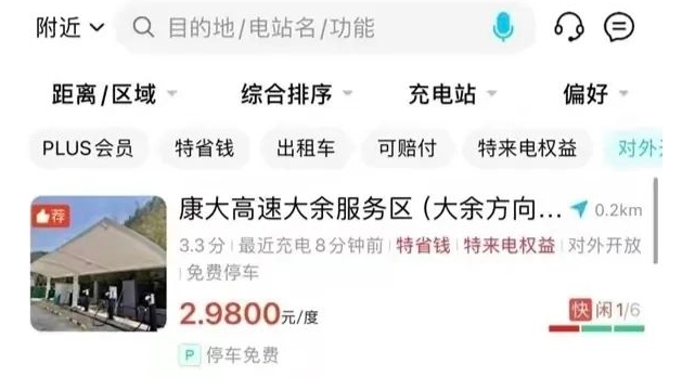 1月31日,一張“服務(wù)區(qū)充電2.98元/度”的截圖在網(wǎng)絡(luò)平臺流傳,顯示地址江西贛州康大高速大余服務(wù)區(qū)。