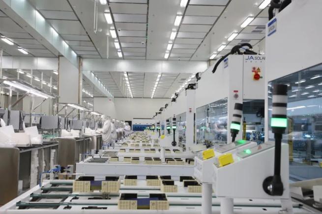 4月1日,晶澳太陽能有限公司6GW高效太陽能電池智能生產(chǎn)線項(xiàng)目車間內(nèi),機(jī)械臂有條不紊地完成各項(xiàng)工序,自動(dòng)導(dǎo)引運(yùn)輸車(AGV)在規(guī)劃好的區(qū)域和路徑上有序運(yùn)行,一批批產(chǎn)品順利下線。