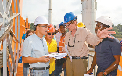 由中企承建的喀麥隆曼維萊水電站主體部分今年2月通過(guò)喀方臨時(shí)驗(yàn)收委員會(huì)驗(yàn)收。該項(xiàng)目位于喀麥隆南部大區(qū),總投資6.37億美元,總裝機(jī)容量211兆瓦。圖為監(jiān)理團(tuán)隊(duì)和喀方業(yè)主成員對(duì)水電站主體部分進(jìn)行技術(shù)驗(yàn)收。