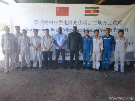 蘇里南時間11月13日,江西電建公司承建的蘇里南村莊微電網(wǎng)光伏項目(二期)開工儀式在項目現(xiàn)場隆重舉行。蘇里南共和國副總統(tǒng)布林斯韋克、自然資源部部長戴維阿比亞莫夫等人出席儀式。