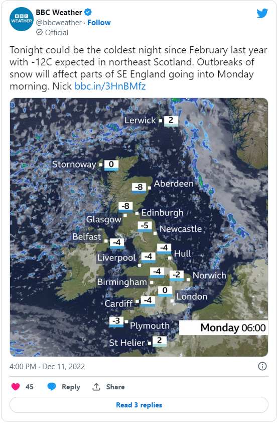 據(jù)了解,英國氣象局在上周四之前發(fā)布了黃色冰雪天氣預(yù)警,而到上周日晚上,倫敦的氣溫將降至零下3攝氏度(26.6華氏度),這將增加供暖需求。英國國家電網(wǎng)公司的數(shù)據(jù)顯示,周一下午5點(diǎn)的用電量預(yù)計(jì)將達(dá)到46,695兆瓦的峰值,高于周日的42,930兆瓦的峰值。