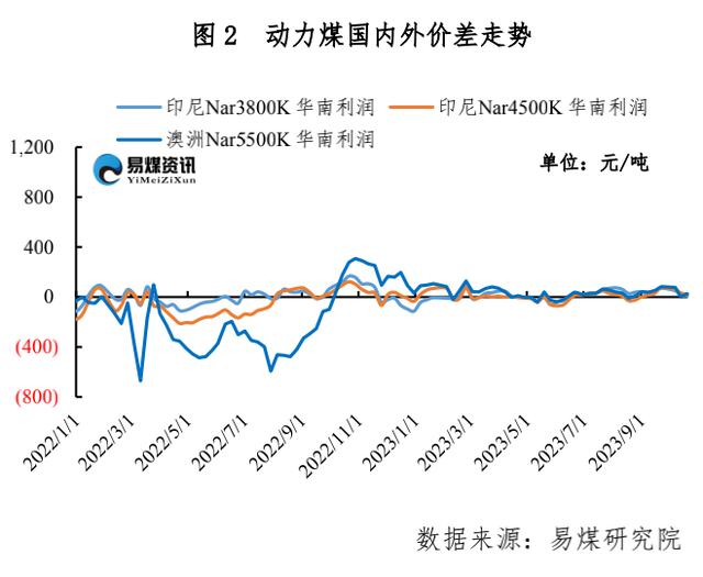 就進(jìn)口市場(chǎng)而言,沿海電廠庫存環(huán)比回落但依舊位于歷史高位,兩廣地區(qū)和福建庫存較為充裕,電廠仍以剛需采購為主,議價(jià)話語權(quán)較高,但海外煤價(jià)支撐較為堅(jiān)挺,進(jìn)口煤采購成本依舊較高,而內(nèi)陸電廠進(jìn)入過冬補(bǔ)庫時(shí)期,短期內(nèi)貿(mào)價(jià)格維持穩(wěn)定,故短期進(jìn)口煤價(jià)支撐仍在。