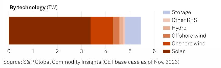 注:來自標普全球商品洞察,從左至右依次為太陽能、在岸風電、海外風電、氫能、其他可再生能源和儲能