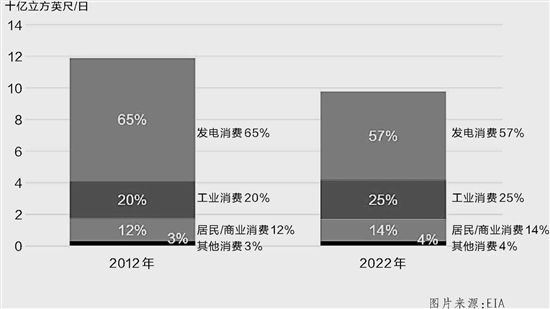 日本能源政策的目標是,到2030年將天然氣發(fā)電在日本發(fā)電中的份額從2022年的34%降至20%。電力和工業(yè)部門是日本最大的天然氣消費部門,2022年占日本天然氣消費總量的82%。2011年福島第一核電站發(fā)生嚴重核泄漏事故和隨后的核反應堆關閉,導致電力部門的LNG消費量從2010年的58億立方英尺/日增至2012年的78億立方英尺/日。然而,自2019年以來,隨著日本更多的核電產能恢復,電力行業(yè)的LNG消費量一直在下降。