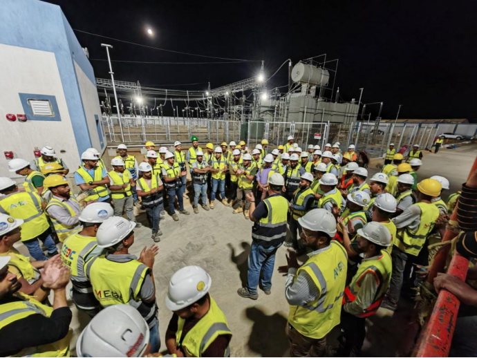 為確保倒送電工作順利完成,項(xiàng)目部科學(xué)組織、精心策劃,積極協(xié)調(diào)業(yè)主方、民防局和埃及電網(wǎng)公司等相關(guān)單位,按照時(shí)序計(jì)劃,逐步驗(yàn)收,特別是在倒送電開(kāi)始前,對(duì)相關(guān)部門(mén)專(zhuān)業(yè)人員進(jìn)行全面的安全與技術(shù)交底,嚴(yán)格執(zhí)行倒送電調(diào)試措施。在項(xiàng)目業(yè)主和埃及電網(wǎng)公司相關(guān)負(fù)責(zé)人的見(jiàn)證下,整個(gè)受電過(guò)程順利、可控且受電后各系統(tǒng)設(shè)備運(yùn)行正常,參數(shù)準(zhǔn)確無(wú)誤。