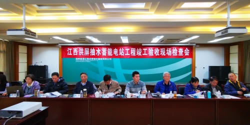 驗(yàn)收委員會(huì)會(huì)議于2019年12月6日在南昌召開。會(huì)議由王忠耀副院長主持。會(huì)議首先由主任委員王忠耀介紹了竣工驗(yàn)收的依據(jù)、程序和驗(yàn)收委員會(huì)成員,隨后,工程運(yùn)行管理單位洪屏公司李幼勝董事長致詞,會(huì)議先后聽取了洪屏抽水蓄能有限公司關(guān)于工程建設(shè)、電站運(yùn)行管理及竣工驗(yàn)收專項(xiàng)驗(yàn)收情況的匯報(bào),設(shè)計(jì)院關(guān)于工程設(shè)計(jì)情況的匯報(bào),以及驗(yàn)收專家組關(guān)于驗(yàn)收結(jié)論意見的介紹。與會(huì)各位委員、代表就工程竣工驗(yàn)收條件和存在的問題進(jìn)行了研究和討論。驗(yàn)收委員會(huì)同意江西洪屏抽水蓄能電站通過工程竣工驗(yàn)收。