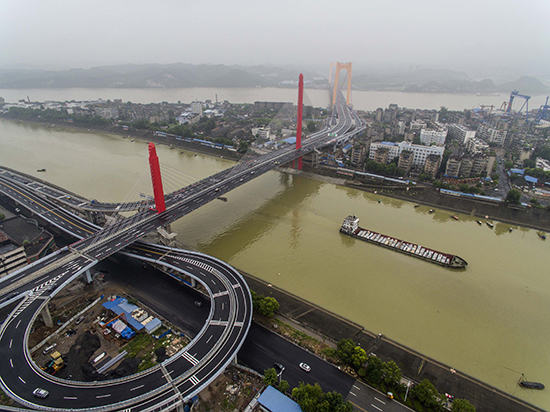 至喜長江大橋是湖北宜昌市建設的第六座長江大橋,葛洲壩路橋公司以BT模式投資參建了至喜長江大橋,并獨立承擔了三江橋與引橋、西壩立交與江北立交的全部施工任務,于2016年7月正式建成通車試運營。在施工過程中,葛洲壩路橋公司始終堅持科技創(chuàng)新,提升工程品質,攻克了不對稱弧形變截面薄翼板箱梁掛籃施工技術、加高鏤空液壓爬架翻模施工技術、塔吊大橫桿超長附作技術、快速拼裝0號塊支架施工技術、鋼混結合圍堰施工技術等關鍵技術,取得了豐富的科技創(chuàng)新成果。研發(fā)的《中央索面不對稱弧形變截面箱梁斜拉橋施工關鍵技術》,被中國公路建設行業(yè)協(xié)會鑒定為國際先進,成功解決了斜拉橋施工中一系列技術難題,促進了該橋型在橋梁建設行業(yè)內的發(fā)展。