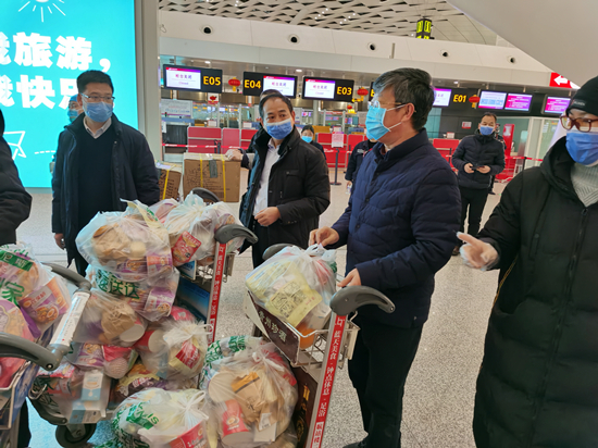 行政事務(wù)部專門為黃河三門峽醫(yī)院馳援武漢的醫(yī)護(hù)人員準(zhǔn)備了食品和生活用品,并送到新鄭機(jī)場(chǎng),交到醫(yī)護(hù)人員手中。
