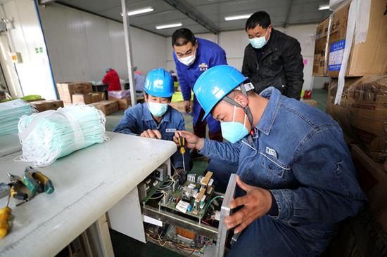 2月13日,在蕭縣丁里工業(yè)園,蕭縣供電公司副總經(jīng)理王海濤帶著營(yíng)銷部負(fù)責(zé)人和供電所服務(wù)人員來(lái)到生產(chǎn)醫(yī)用防護(hù)口罩的華源家居用品公司,為該企業(yè)全面檢查用電設(shè)備、優(yōu)化保供電方案,設(shè)立常駐保供電客戶經(jīng)理,確保企業(yè)用電無(wú)憂。(馮巖 李令響)