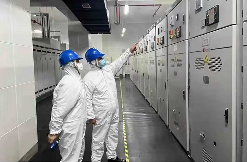 國(guó)網(wǎng)山東青島供電公司員工對(duì)隔離定點(diǎn)醫(yī)院開(kāi)展設(shè)備特巡。
