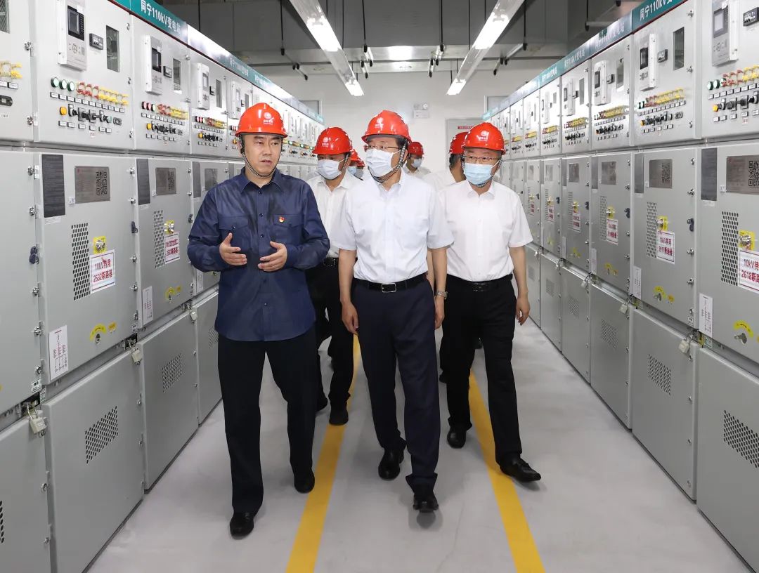 盛夏時(shí)節(jié),驕陽似火。辛保安首先來到110千伏同寧變電站,實(shí)地查看了設(shè)備運(yùn)行情況。該站是國網(wǎng)北京電力迎峰度夏重點(diǎn)工程,于4月份投運(yùn),對(duì)滿足客戶用電需求、保障電力可靠供應(yīng)發(fā)揮了積極作用。辛保安聽取了北京公司電力保供、重點(diǎn)工程建設(shè)情況的匯報(bào)。他指出,要堅(jiān)決扛牢電力保供首要責(zé)任,堅(jiān)持政企協(xié)同聯(lián)動(dòng)、源網(wǎng)荷儲(chǔ)發(fā)力、各方齊心合力,科學(xué)安排電網(wǎng)運(yùn)行方式,強(qiáng)化作業(yè)現(xiàn)場安全管控,抓實(shí)抓細(xì)疫情防控工作,著力提高應(yīng)急響應(yīng)能力,確保圓滿完成迎峰度夏各項(xiàng)任務(wù)。要堅(jiān)持高起點(diǎn)、高標(biāo)準(zhǔn)規(guī)劃建設(shè)一流城市電網(wǎng),充分發(fā)揮電網(wǎng)基礎(chǔ)支撐、投資拉動(dòng)和服務(wù)保障作用,全力推進(jìn)重大工程建設(shè),加大開工力度、加快建設(shè)進(jìn)度,有效釋放產(chǎn)業(yè)鏈上下游市場需求,助力穩(wěn)經(jīng)濟(jì)穩(wěn)增長。
