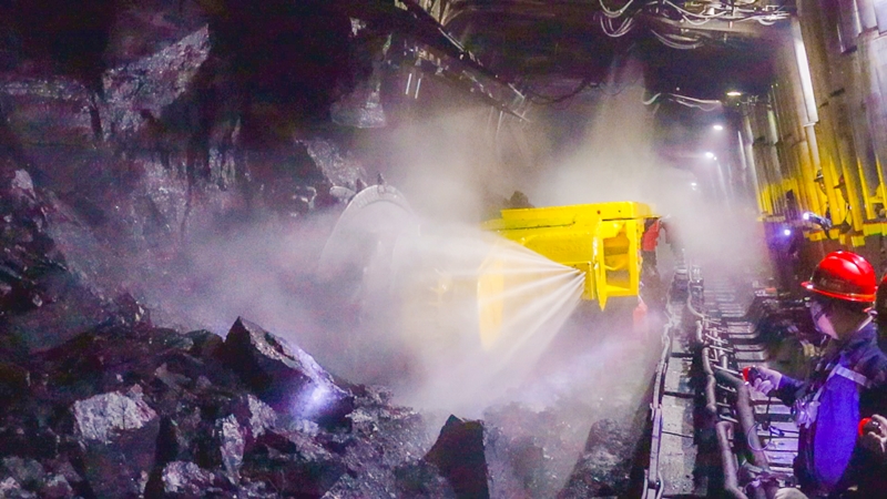 山西焦煤山煤國(guó)際霍爾辛赫煤業(yè)3803工作面,員工通過(guò)綜合機(jī)械化、智能化采煤設(shè)備,實(shí)現(xiàn)了安全高效生產(chǎn)。李俊杰攝
