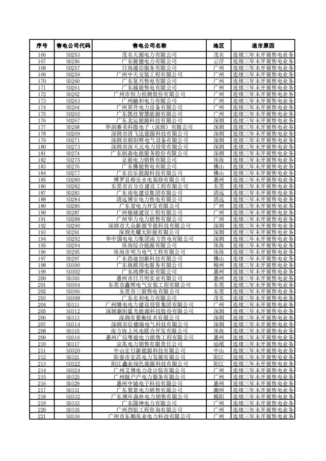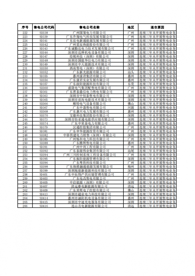 廣東電力交易中心今日發(fā)布通知,對(duì)266家售電公司實(shí)施強(qiáng)制退市,從電力市場(chǎng)主體目錄中刪除,并注銷(xiāo)其電力交易平臺(tái)賬號(hào)。