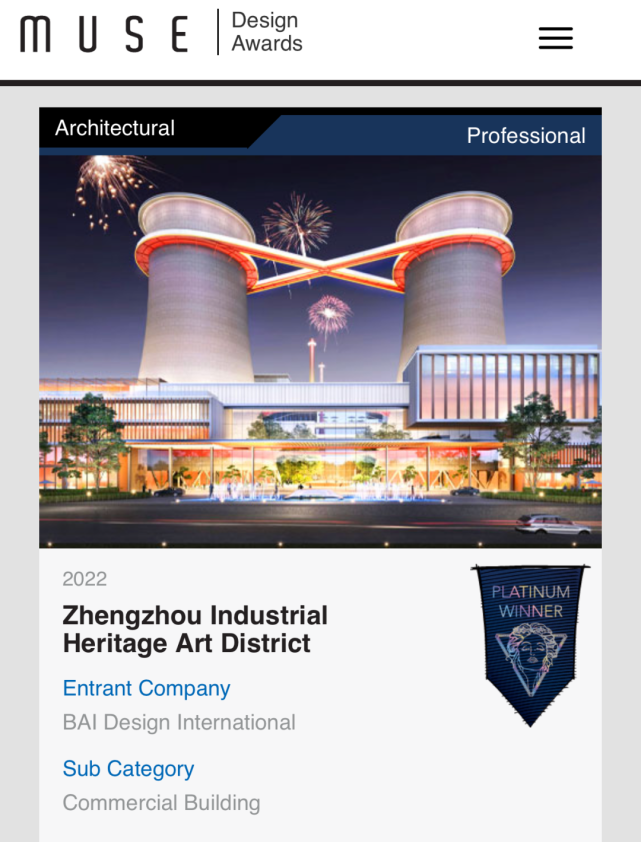 近日,2022繆斯設(shè)計獎 MUSE Design Awards 揭曉獲獎名單,由英國杰典國際建筑設(shè)計的鄭州沙口壹號藝術(shù)園區(qū) Zhengzhou Industrial Heritage Art District 項目,從來自全球38個國家/地區(qū)的6000多份參賽作品中脫穎而出,斬獲2022繆斯設(shè)計獎 MUSE Design Awards 建筑-商業(yè)綜合體類鉑金獎!誰也想不到這個藝術(shù)園區(qū)的前身是鄭州興隆鋪熱電廠。