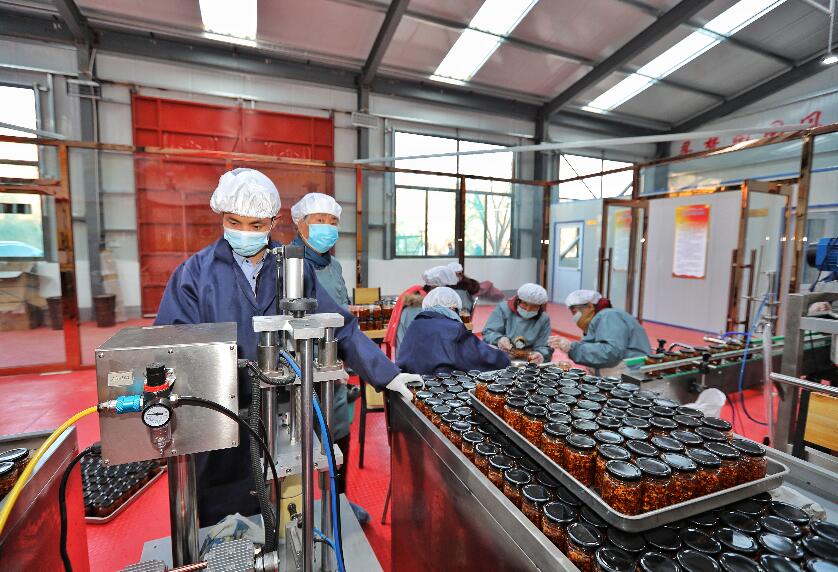 栗家溝的辣椒生產(chǎn)車(chē)間從日產(chǎn)不足200瓶增長(zhǎng)至1500瓶,從簡(jiǎn)單的炒制車(chē)間逐步發(fā)展成為標(biāo)準(zhǔn)化生產(chǎn)車(chē)間,生產(chǎn)效率不斷提升,生產(chǎn)結(jié)構(gòu)不斷優(yōu)化,并為村民提供就業(yè)崗位30個(gè)。同時(shí),為保障食品衛(wèi)生安全,生產(chǎn)車(chē)間增設(shè)了食品衛(wèi)生監(jiān)督員、工藝監(jiān)督員、生產(chǎn)巡查員等監(jiān)察崗位。