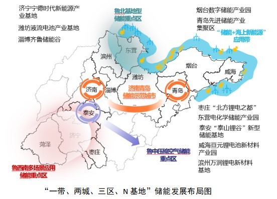 2022年底,《山東省新型儲(chǔ)能工程發(fā)展行動(dòng)方案》正式印發(fā)。其中明確,山東將著力構(gòu)建“一帶、兩城、三區(qū)、N基地”發(fā)展格局,包括:打造“儲(chǔ)能+海上新能源”應(yīng)用帶,建設(shè)濟(jì)南、青島儲(chǔ)能示范城市,構(gòu)建魯北、魯中、魯西多個(gè)儲(chǔ)能重點(diǎn)區(qū),培育一批特色鮮明的產(chǎn)業(yè)基地,實(shí)現(xiàn)新型儲(chǔ)能由商業(yè)化初期向規(guī)?;l(fā)展轉(zhuǎn)變。