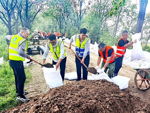 在黑龍江,中建一局裝飾公司收到哈爾濱市南崗區(qū)住建局緊急指令后,組織5名管理人員、4名工人迅速投入抗洪救災行動中,填裝防汛沙袋,在哈西大街、復旦街、尤家街等路段協(xié)助疏解交通,全力保障居民人身財產(chǎn)安全。