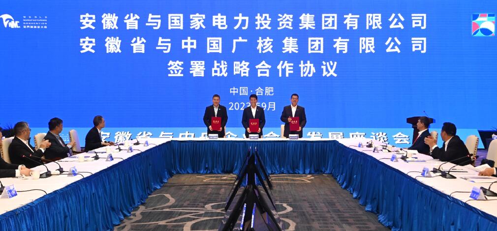 9月19日,安徽省與中央企業(yè)合作發(fā)展座談會(huì)在合肥舉行。在安徽省委書記韓俊,省委副書記、省長(zhǎng)王清憲,國(guó)務(wù)院國(guó)資委黨委委員、副主任王宏志共同見證下,國(guó)家電投黨組成員、副總經(jīng)理劉豐與安徽省委常委、副省長(zhǎng)張紅文代表雙方簽署戰(zhàn)略合作協(xié)議。