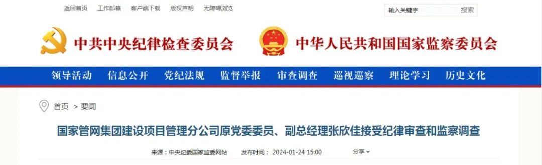 中央紀委國家監(jiān)委網(wǎng)站1月24日,據(jù)國家管網(wǎng)集團紀檢監(jiān)察組、遼寧省紀委監(jiān)委消息:國家管網(wǎng)集團建設項目管理分公司原黨委委員、副總經(jīng)理張欣佳涉嫌嚴重違紀違法,目前正接受國家管網(wǎng)集團紀檢監(jiān)察組和遼寧省錦州市監(jiān)委紀律審查和監(jiān)察調(diào)查。