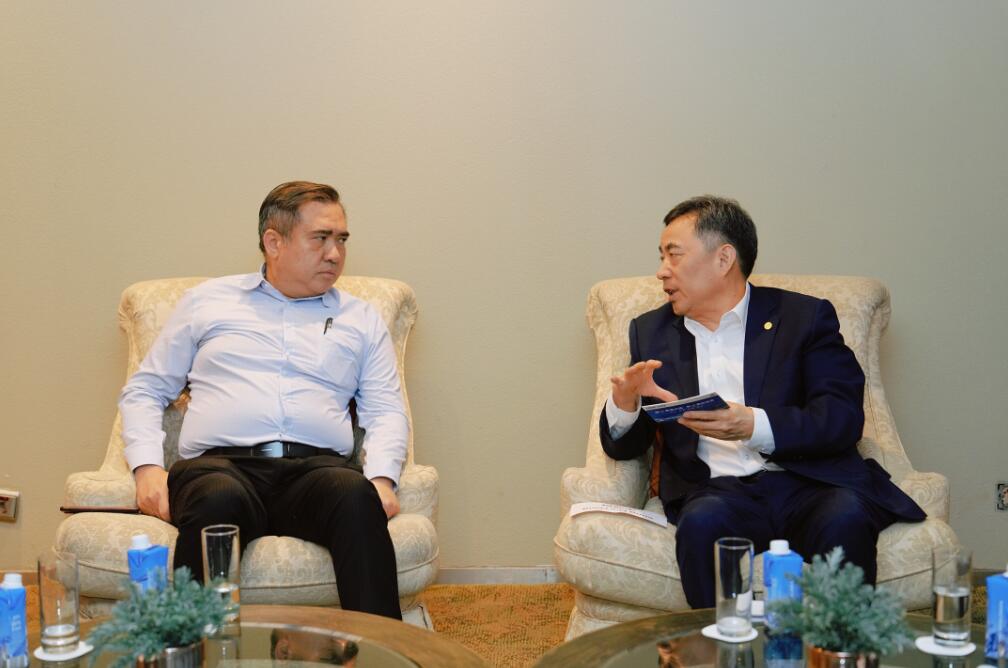 陸兆福對(duì)中國(guó)能建代表團(tuán)一行到訪表示歡迎,并簡(jiǎn)要介紹了馬來(lái)西亞新能源及交通系統(tǒng)發(fā)展情況。他表示,馬來(lái)西亞在“2030愿景”指導(dǎo)下,積極推動(dòng)能源結(jié)構(gòu)轉(zhuǎn)型,加快風(fēng)、光、儲(chǔ)等綠色清潔能源發(fā)展,探索更多“新能源+”場(chǎng)景和應(yīng)用。目前,正在通過(guò)加快軌道、航空和航運(yùn)基礎(chǔ)設(shè)施建設(shè),打造綠色交通系統(tǒng),推動(dòng)交通行業(yè)綠色低碳發(fā)展。中國(guó)能建擁有豐富的項(xiàng)目建設(shè)經(jīng)驗(yàn)和強(qiáng)大的技術(shù)實(shí)力,雙方合作空間廣闊、潛力巨大。希望中國(guó)能建充分發(fā)揮綜合交通投建營(yíng)一體化優(yōu)勢(shì),開(kāi)發(fā)水陸空等交通領(lǐng)域與能源融合的更多應(yīng)用,在風(fēng)光新能源、綠氫綠氨綠甲醇等方面開(kāi)展全方位務(wù)實(shí)合作,提供更有價(jià)值、更具整體競(jìng)爭(zhēng)力的系統(tǒng)化解決方案。希望雙方進(jìn)一步加強(qiáng)合作交流,共同推動(dòng)馬來(lái)西亞新能源發(fā)展。