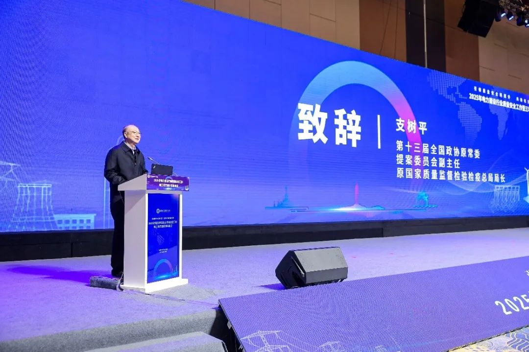 第十三屆全國(guó)政協(xié)原常委、提案委員會(huì)副主任、原國(guó)家質(zhì)量監(jiān)督檢驗(yàn)檢疫總局局長(zhǎng)支樹(shù)平,中國(guó)工程院院士、山東省原副省長(zhǎng)、山東省科協(xié)主席凌文,中國(guó)南方電網(wǎng)有限責(zé)任公司總工程師汪際峰,中國(guó)電力建設(shè)企業(yè)協(xié)會(huì)會(huì)長(zhǎng)王思強(qiáng)出席會(huì)議并致辭。國(guó)家能源局電力安全監(jiān)管司司長(zhǎng)汪擁軍,中國(guó)電力建設(shè)企業(yè)協(xié)會(huì)總工程師兼副秘書長(zhǎng)白林杰發(fā)表主旨演講。國(guó)家能源集團(tuán)原副總經(jīng)理馮樹(shù)臣,中國(guó)電力建設(shè)企業(yè)協(xié)會(huì)副會(huì)長(zhǎng)、北京能源集團(tuán)副總經(jīng)理張鳳陽(yáng),中國(guó)電力建設(shè)企業(yè)協(xié)會(huì)副會(huì)長(zhǎng)、內(nèi)蒙古能源集團(tuán)副總經(jīng)理賀彪,中國(guó)電力建設(shè)企業(yè)協(xié)會(huì)駐會(huì)副會(huì)長(zhǎng)尹松,中國(guó)電力建設(shè)企業(yè)協(xié)會(huì)秘書長(zhǎng)?;燮迹袊?guó)電力建設(shè)企業(yè)協(xié)會(huì)總經(jīng)濟(jì)師王彥文、中國(guó)電力建設(shè)企業(yè)協(xié)會(huì)副總工程師石玉成及來(lái)自中國(guó)電力建設(shè)企業(yè)協(xié)會(huì)理事單位、常務(wù)理事單位、全國(guó)各地的電力建設(shè)企業(yè)、科研機(jī)構(gòu)、高等院校等共計(jì)4200余名代表參加會(huì)議。會(huì)議由中國(guó)電力建設(shè)企業(yè)協(xié)會(huì)常務(wù)副會(huì)長(zhǎng)王軍主持。