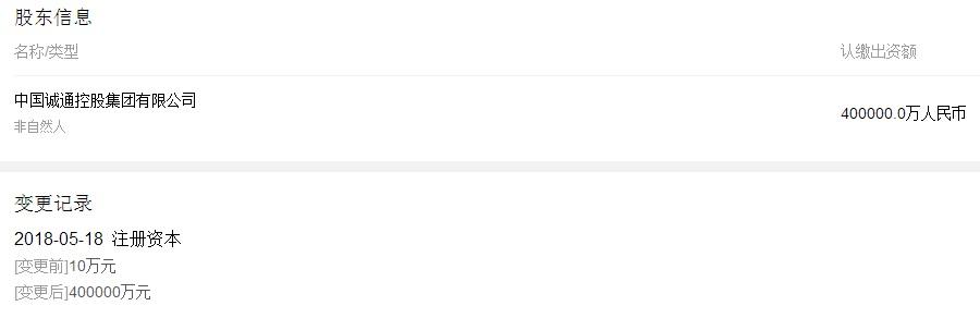 誠(chéng)通集團(tuán)是國(guó)資委首批中央企業(yè)建立和完善國(guó)有獨(dú)資公司董事會(huì)試點(diǎn)企業(yè)和國(guó)有資產(chǎn)經(jīng)營(yíng)公司試點(diǎn)企業(yè)。列2009中國(guó)企業(yè)500強(qiáng)第187名,2009中國(guó)服務(wù)業(yè)企業(yè)500強(qiáng)第62名,2008中國(guó)物流、倉(cāng)儲(chǔ)、運(yùn)輸、配送服務(wù)業(yè)第3名。北京誠(chéng)通金控是中國(guó)誠(chéng)通集團(tuán)的全資子公司,成立于2015年,在今年5月份剛剛將注冊(cè)資本由10萬(wàn)元變更為40億元。