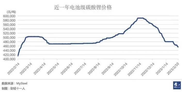 近年持續(xù)增長的新能源汽車訂單,帶動鋰電池需求,原礦價格不斷上漲。大宗商品數據服務商MySteel數據顯示,過去兩年,碳酸鋰價格一路上漲:2021年初每噸不到10萬元,2022年11月,碳酸鋰報價為每噸59萬元。