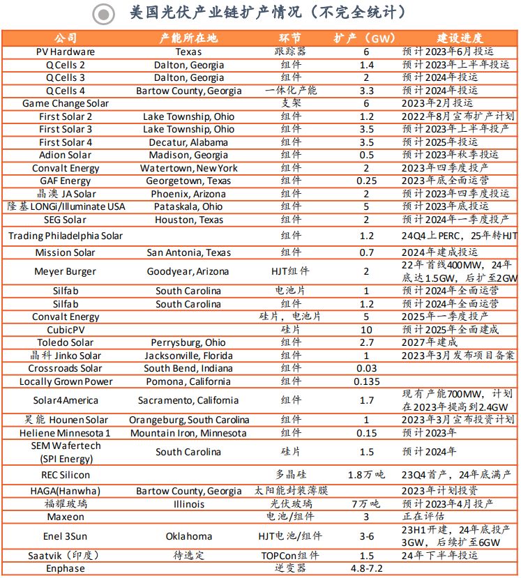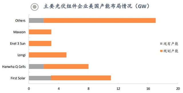 來源:InfoLink,Solar Power World,SEIA,Wood Mackenzie,平安證券(上述項(xiàng)目暫未計(jì)入阿特斯7月剛宣布的5GW美國工廠計(jì)劃)