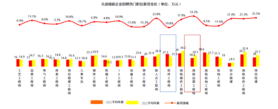 2022年頭部?jī)?chǔ)能企業(yè)熱招崗位漲薪變化
