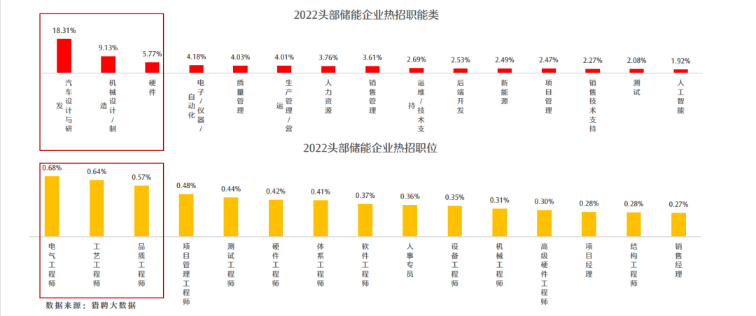 2022年頭部?jī)?chǔ)能企業(yè)發(fā)布的前15個(gè)熱招職位中,有13個(gè)是“工程師”職位
