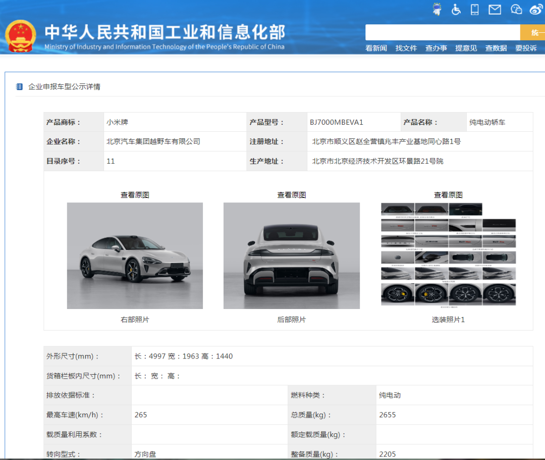 官宣2024年上半年與大眾見面的小米汽車,近日已經(jīng)出現(xiàn)在工信部新車名錄中。12月12日,工信部發(fā)布《道路機動車輛生產(chǎn)企業(yè)及產(chǎn)品》(第377批)以及《免征車輛購置稅的新能源汽車車型目錄》(第七十二批)。小米牌兩款純電動轎車車型現(xiàn)身工信部該批次目錄。(此前報道:小米汽車大消息!)