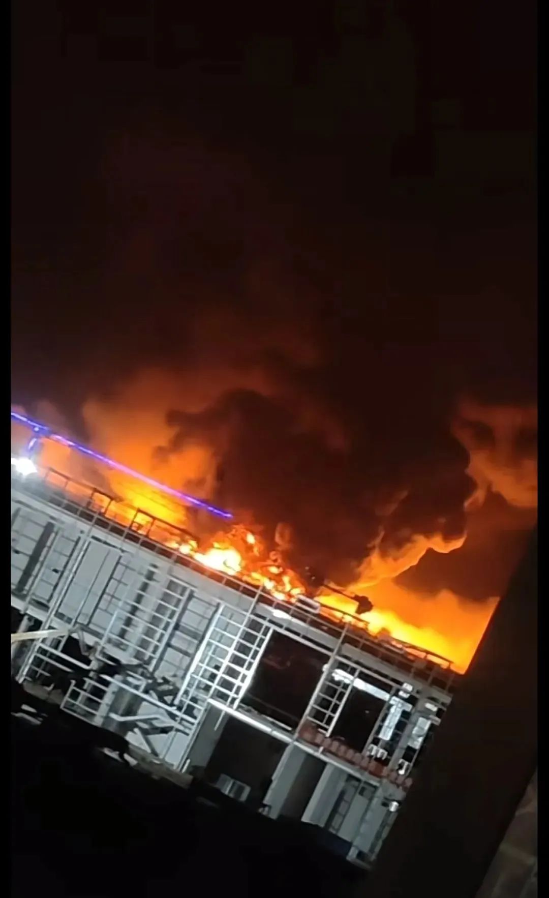據(jù)多個視頻顯示,火災(zāi)發(fā)生后,相關(guān)方調(diào)派了多地大批消防車到場滅火,持續(xù)到晚上12時,火災(zāi)仍未撲滅。有消息稱是Pt板著火。