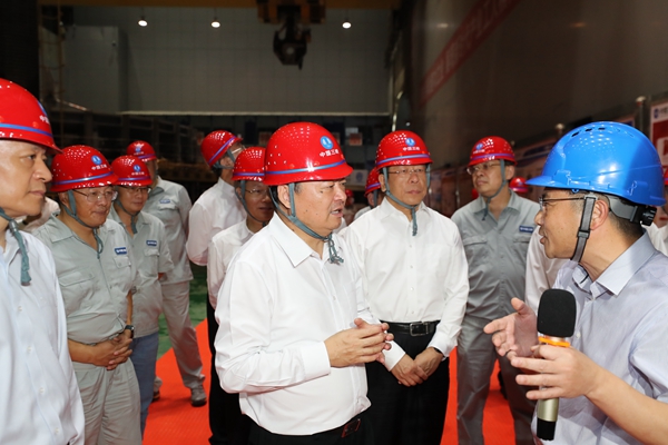 白鶴灘水電站是當今世界在建規(guī)模最大、技術難度最高的水電工程。郝鵬來到白鶴灘水電站,登上壩頂,俯瞰工程全貌,深入地下廠房左岸1號機組、右岸14號機組,看望慰問奮戰(zhàn)在一線的企業(yè)干部職工,與大家親切交流,詳細了解工程總體規(guī)劃、世界最大百萬千瓦水輪發(fā)電機組發(fā)電、庫區(qū)生態(tài)環(huán)境保護等情況。郝鵬指出,白鶴灘水電站是中央企業(yè)全產業(yè)鏈協(xié)同創(chuàng)新、自主創(chuàng)新的典型范例,由中國三峽集團牽頭,國家電網、東方電氣集團、哈電集團、中國電建、中國能建等積極參與,在水電工程的設計規(guī)劃、材料科學、裝備制造、施工技術、智能管理等領域實現(xiàn)了多項技術創(chuàng)新,創(chuàng)造了多個世界第一,令人鼓舞振奮、倍感自豪。要再接再厲、苦干實干,科學有序推進后續(xù)各項工作,高標準高質量打造精品工程,確保全部工程如期建成投產、安全穩(wěn)定運行,為實施好“西電東送”國家重大工程,保障國家能源安全提供有力支撐。