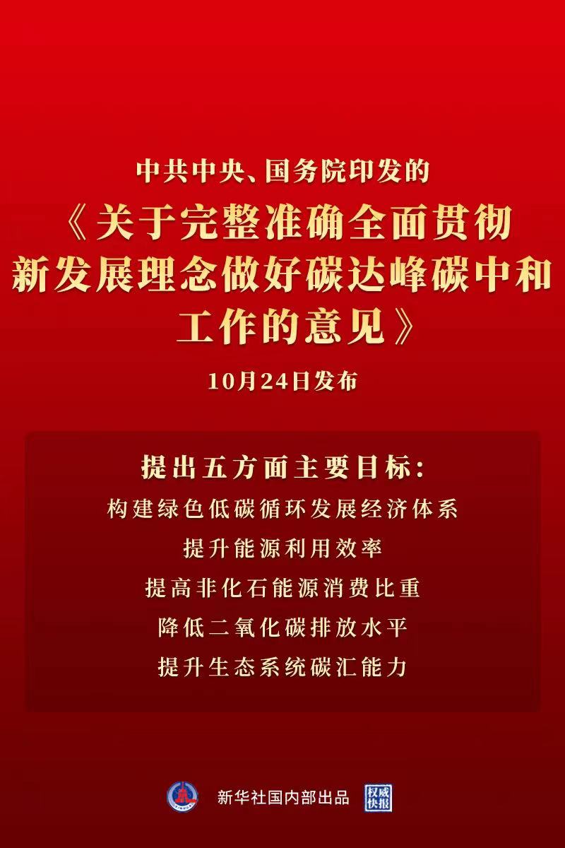 中共中央 國(guó)務(wù)院正式發(fā)布《關(guān)于完整準(zhǔn)確全面貫徹新發(fā)展理念做好碳達(dá)峰碳中和工作的意見》