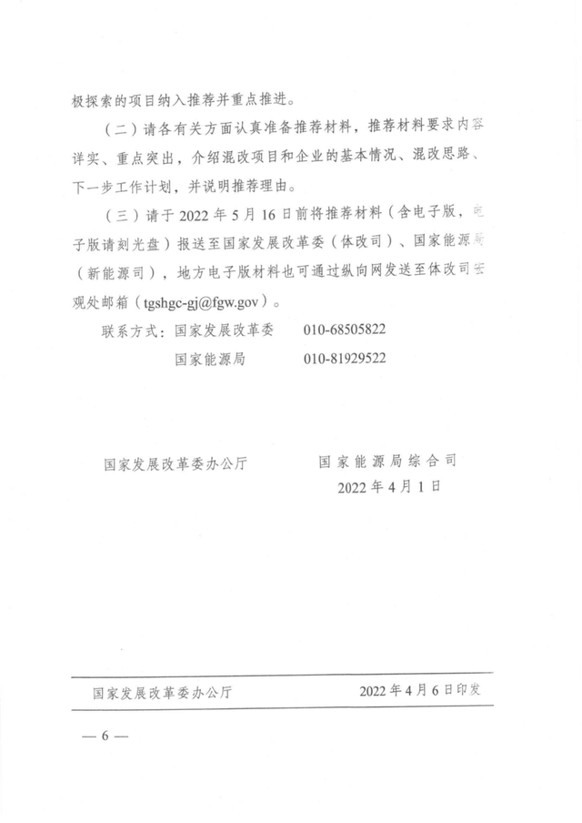 近日,國家發(fā)展改革委辦公廳國家能源局綜合司聯(lián)合下發(fā)《關(guān)于做好新能源領(lǐng)域增量混合所有制改革重點推進項目工作的通知》,文件提出: