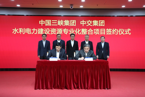 2023年1月14日,中國(guó)三峽集團(tuán)與中交集團(tuán)水利電力建設(shè)資源專(zhuān)業(yè)化整合項(xiàng)目簽約儀式在北京舉行,國(guó)資委黨委委員、副主任翁杰明出席儀式并講話(huà)。